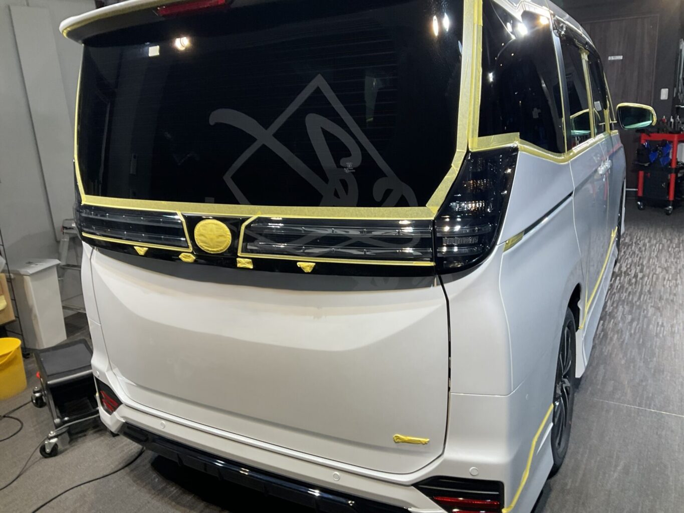 洗車後、しっかりとマスキングをしてから磨き作業をし、コーティングをさせていただきました。